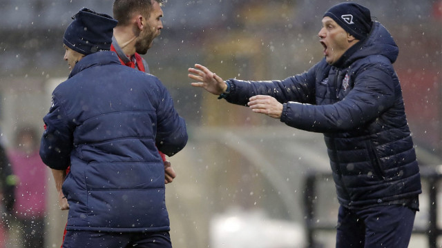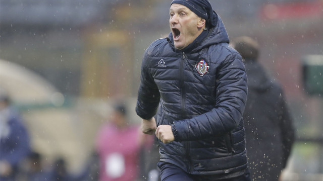 nella foto: Mister Bisoli urlo finale