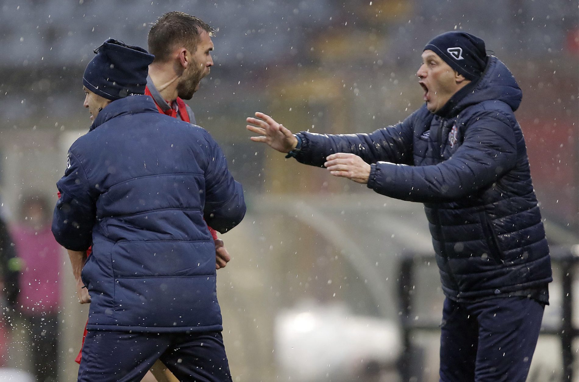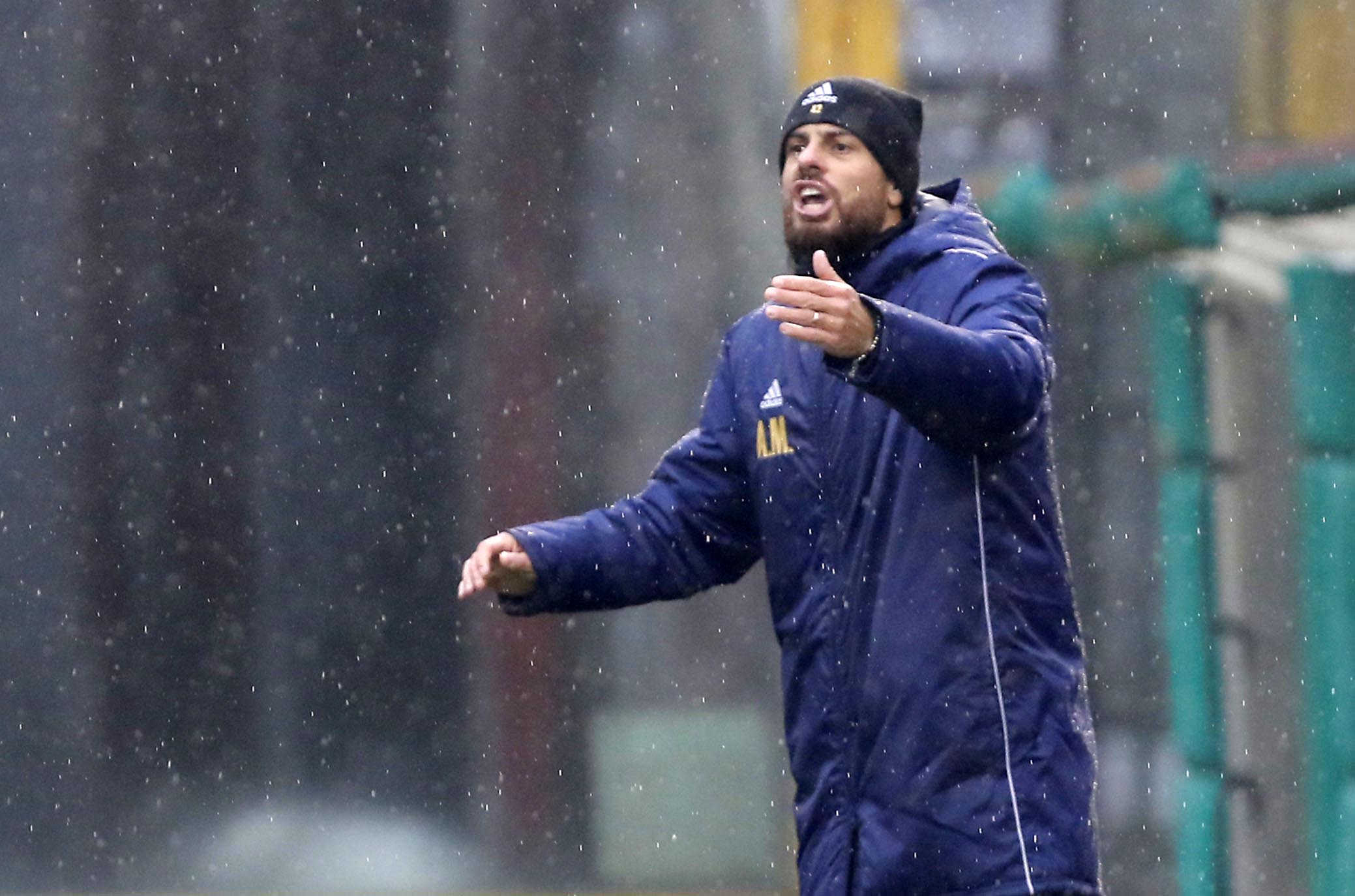 nella foto: Mister Bisoli urlo finale