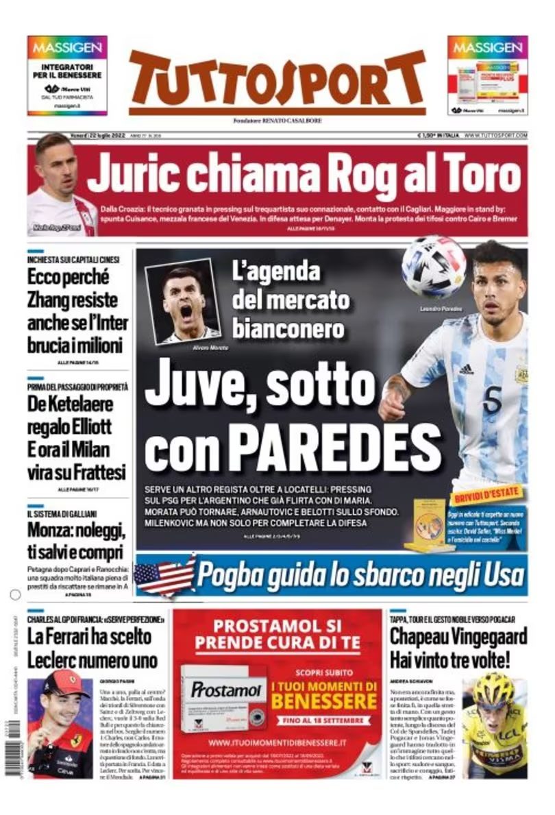 Queste infatti le prime pagine di Gazzetta, Corriere e Tuttosport oggi in edicola: