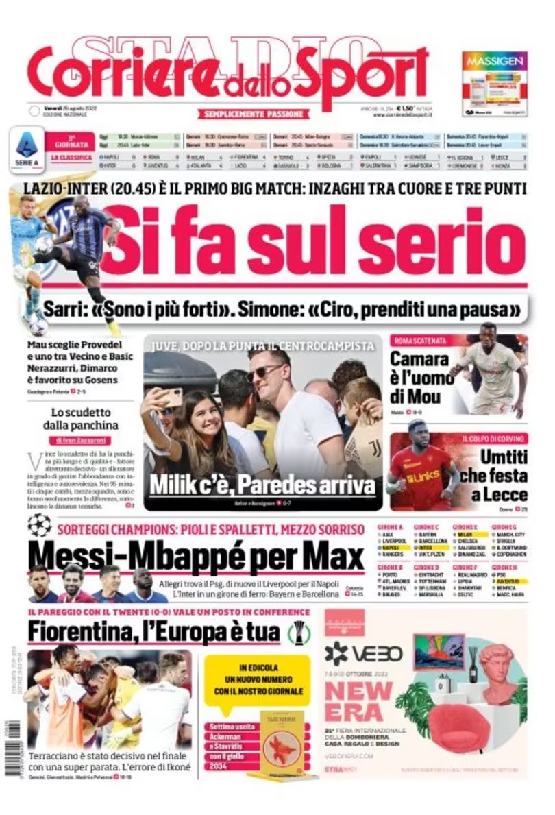 Queste, infatti, le prime pagine di Gazzetta, Corriere e Tuttosport oggi in edicola: