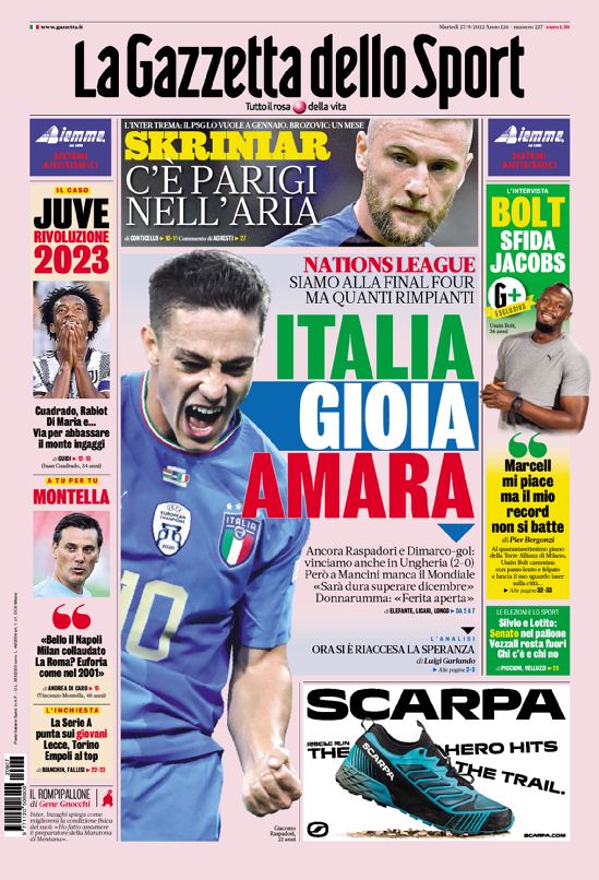 Le prime pagine dei quotidiani sportivi in edicola oggi, martedƬ 27 settembre 2022.