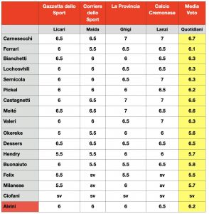 La stampa di settore promuove la Cremonese che ieri sera ha affrontato la Juventus