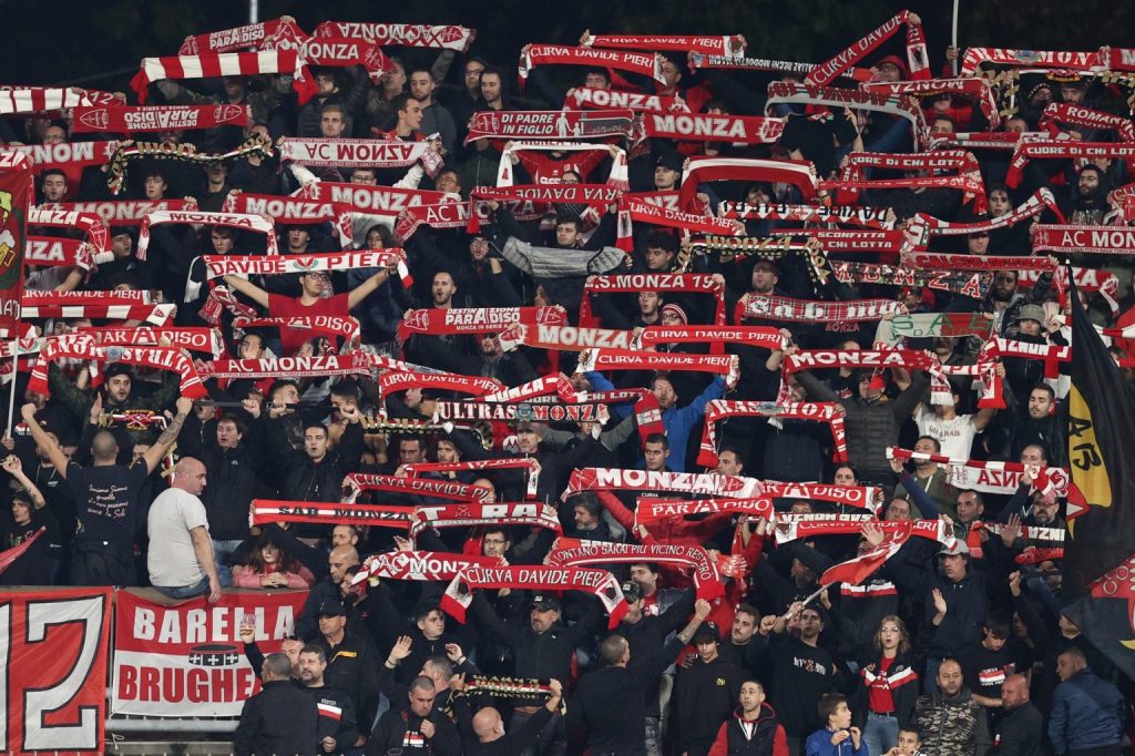 “Sempre con noi” la scritta messa in mostra in mezzo al campo prima del match dello Zini contro il Monza...