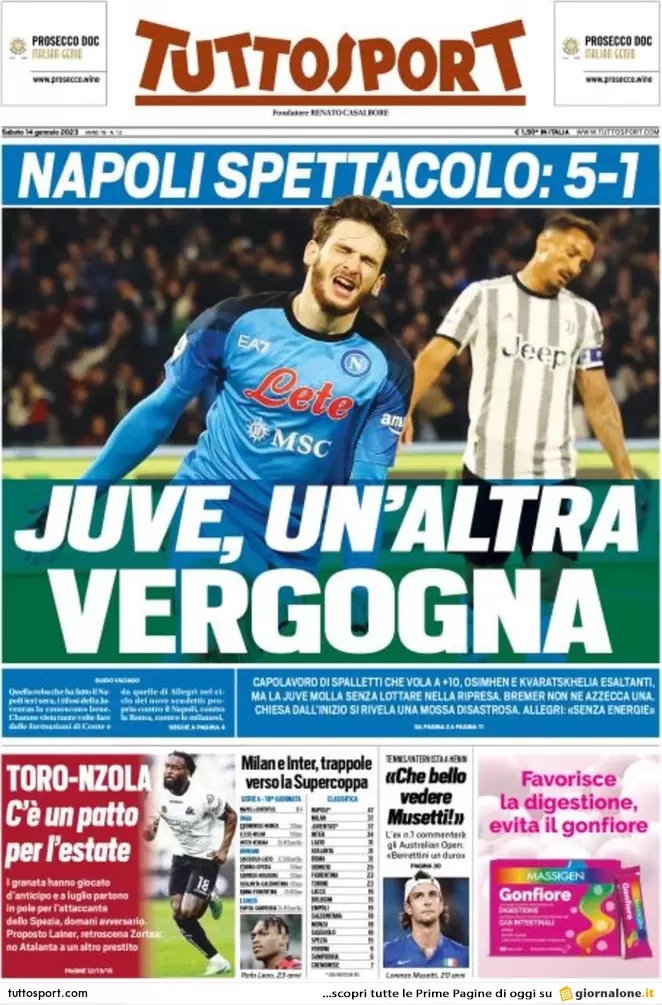 Il successo del Napoli ai danni della Juventus, la Serie A, il mercato e molto altro sulle copertine dei giornali odierni