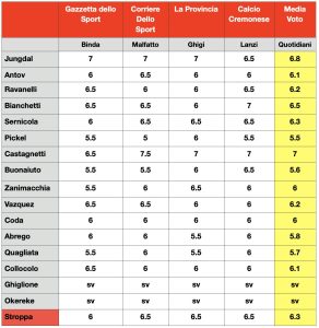 In un sabato complicato per la Cremonese, a prendersi la scena è, per una volta, la difesa. Pagelle della stampa di settore alla mano, infatti, se l’attacco è meno spumeggiante del solito, la squadra grigiorossa sei dimostrata solida ieri e anche questa volta Jungdal non subisce gol. Un’ottima premia, volendo vedere il bicchiere mezzo pieno, per il futuro.