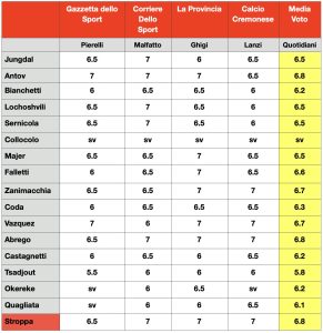 Vince e convince al Cremonese che conquista il derby contro il Brescia e vola al secondo posto in classifica. In questo momento tutto gira alla perfezione tra i grigiorossi, capaci di gestire anche le situazioni complicate come l’infortunio di Collocolo dopo pochi minuti. Chi entra al suo posto, Abrego, si capa subito nella parte, è decisivo per il finale e soprattutto gioca una grande prova come altri compagni, Antov. Questo il confronto: