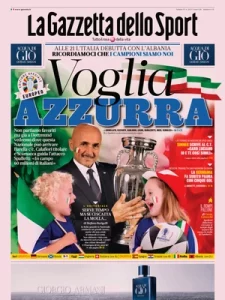 Le prime pagine dei quotidiani sportivi in edicola oggi sabato 15 giugno 2024.