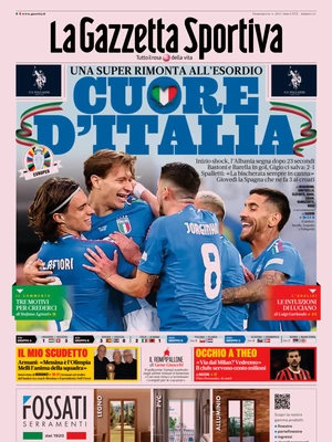 Le prime pagine dei quotidiani sportivi in edicola oggi, domenica 16 giugno 2024