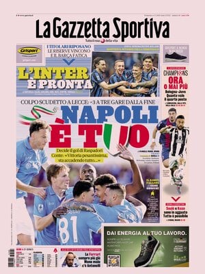 Le prime pagine dei quotidiani sportivi in edicola oggi, domenica 4 maggio 2025.
