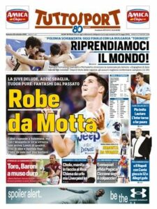 Le prime pagine dei quotidiani sportivi