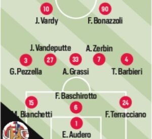 Audero; Terracciano, Baschirotto, Bianchetti; Barbieri, Grassi, Collocolo, Vandeputte, Pezzella; Bonazzoli, Vardy