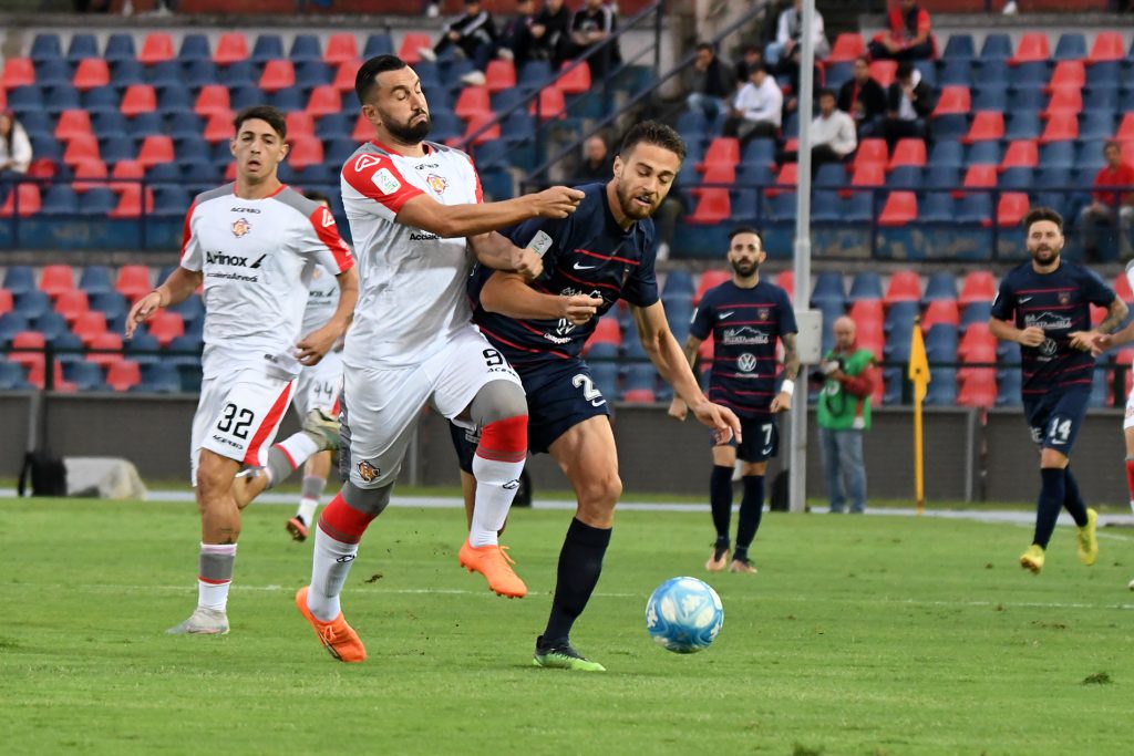 L'attaccante dei biancorossi è un vecchio dal dischetto col suo destro magico, il repertorio del 90 grigiorosso decisamente più variegato...