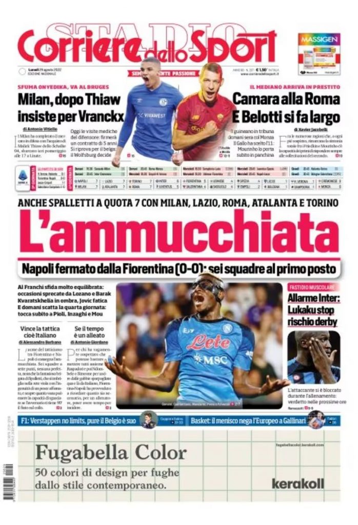 Ć ovviamente la seconda giornata di Serie A la protagonista delle copertine odierne dei maggiori quotidiani sportivi nazionali. Queste infatti...