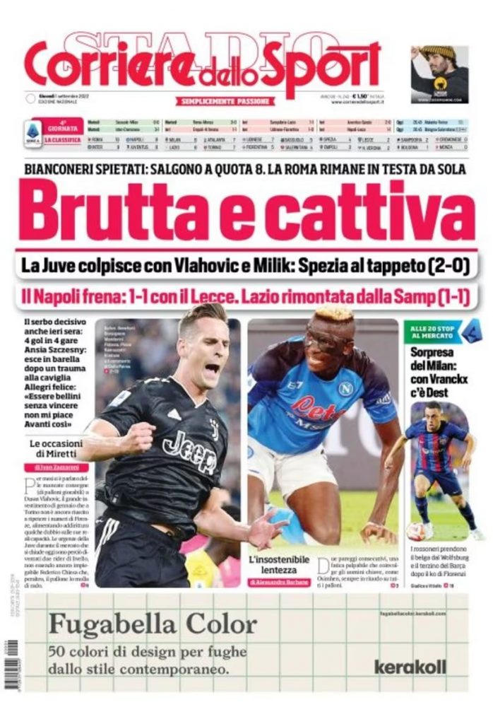 Ć la quinta giornata di campionato a tenere banco sulle copertine odierne dei maggiori quotidiani sportivi nazionali. Queste infatti le...